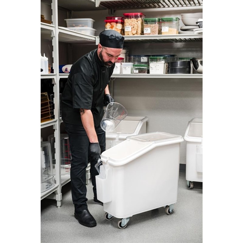 Gardez une cuisine propre, organisée et efficace avec ce bac à ingrédients mobile d'une capacité de 102 litres Cambro. Idéal pour stocker des ingrédients en vrac dans n'importe quelle cuisine, que ce soit dans un café, un restaurant, une école ou un grand complexe touristique, ce bac est conçu pour être pratique et promouvoir la sécurité alimentaire de sorte que vous puissiez facilement cuisiner et servir vos clients en toute sécurité. Le bac à ingrédients dispose également d'un crochet en S pratique pour suspendre les pelles à ingrédients.