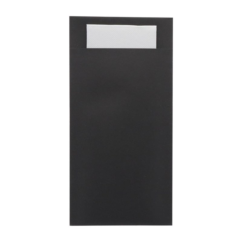 Pochettes à couverts Europochette taille royale noire avec serviette blanche douce 2 plis (lot de 250)