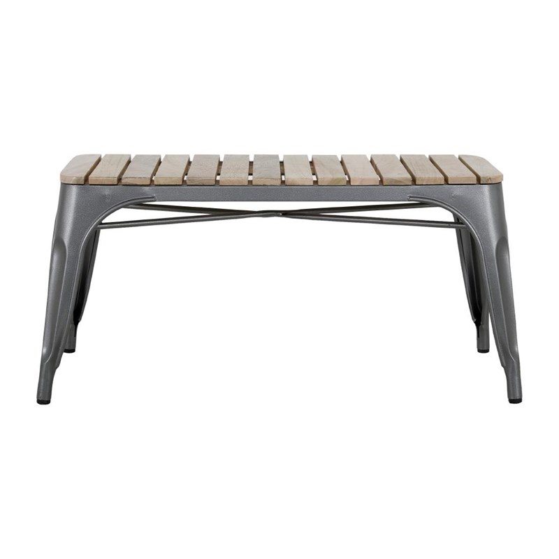 Fourni par lot de deux, chaque banc présente un plateau en bois de manguier à lattes et un cadre en acier à revêtement poudré gris acier, alliant chaleur naturelle et durabilité à long terme. Le cadre résiste aux éclats, aux rayures et à la corrosion, ce qui le rend facile à nettoyer et à entretenir dans les environnements très fréquentés.