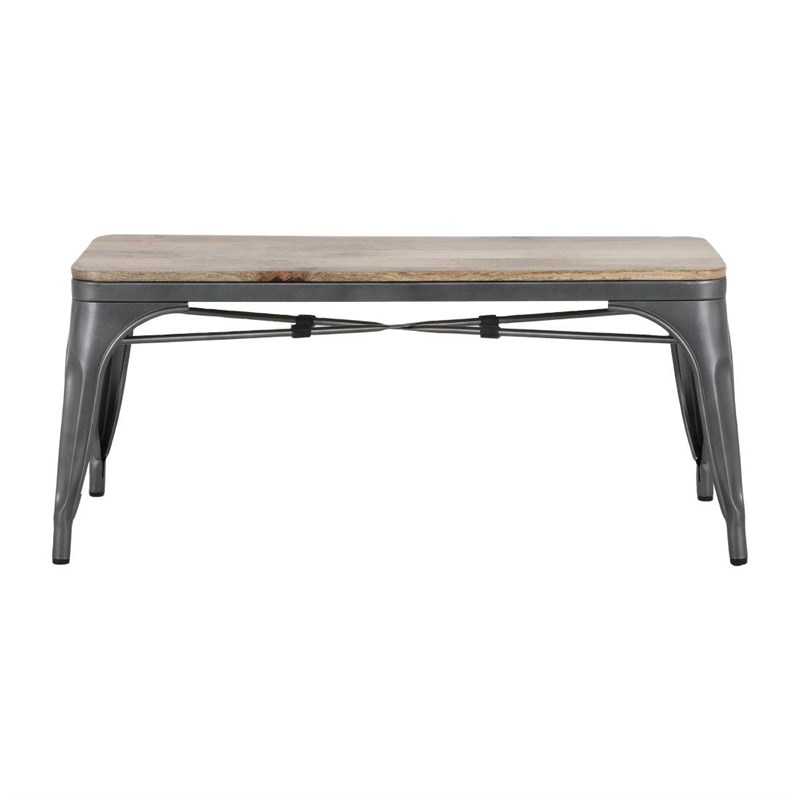 Banc d'intérieur avec assise en bois de manguier et cadre gris acier Bolero Bistro 1000 mm (lot de 2)