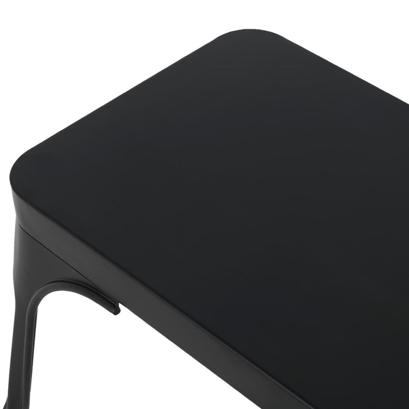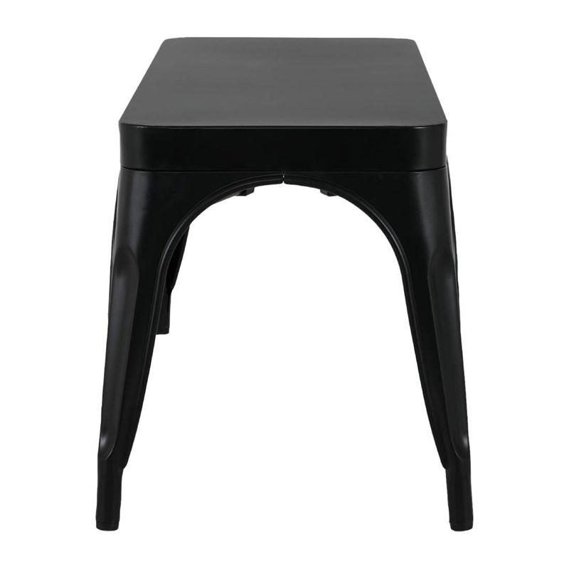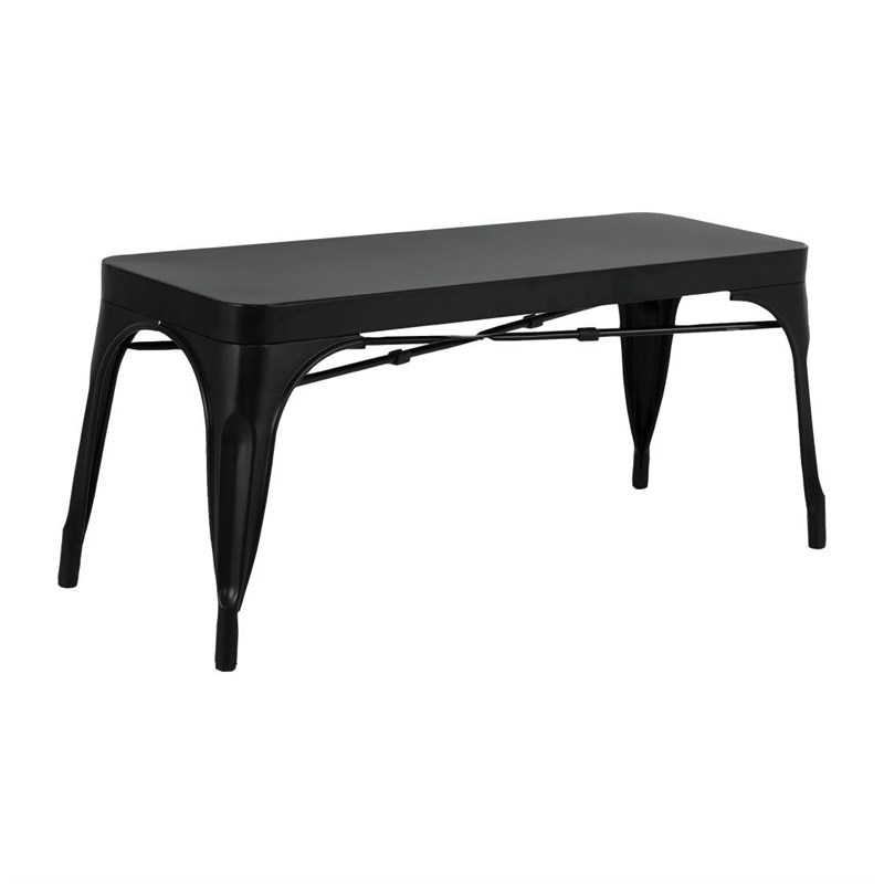 Livrés par lot de deux, chaque banc présente un plateau et un cadre en acier à revêtement poudré noir, offrant un aspect industriel épuré et la solidité nécessaire pour résister aux environnements à fort passage. Le cadre résiste aux éclats, aux rayures et à la corrosion, ce qui facilite le nettoyage et l'entretien.