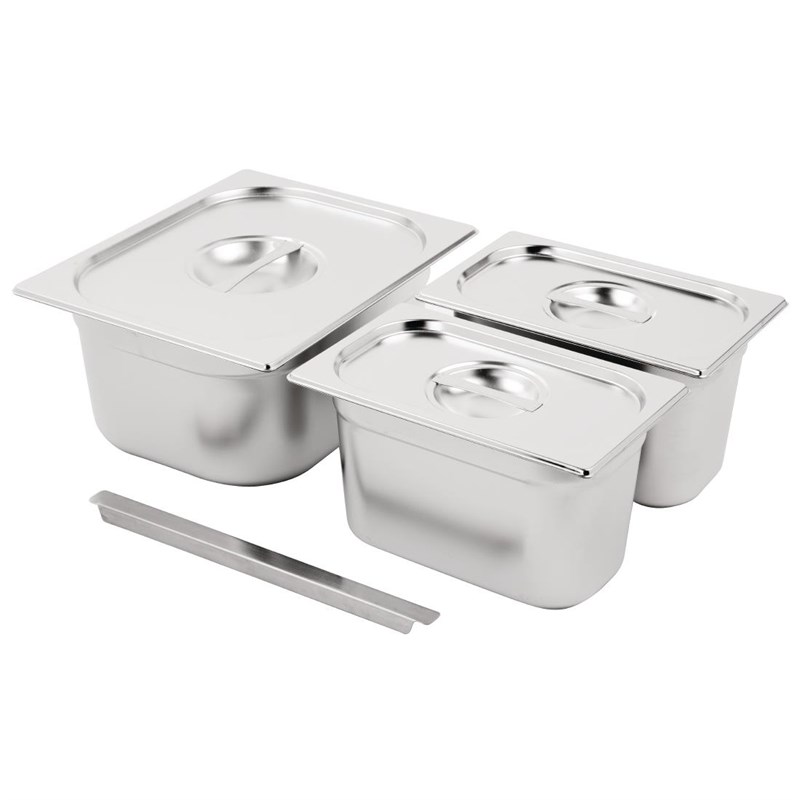 Ensemble de bacs GN 1/2 et 2 x 1/4 inox avec couvercles Vogue