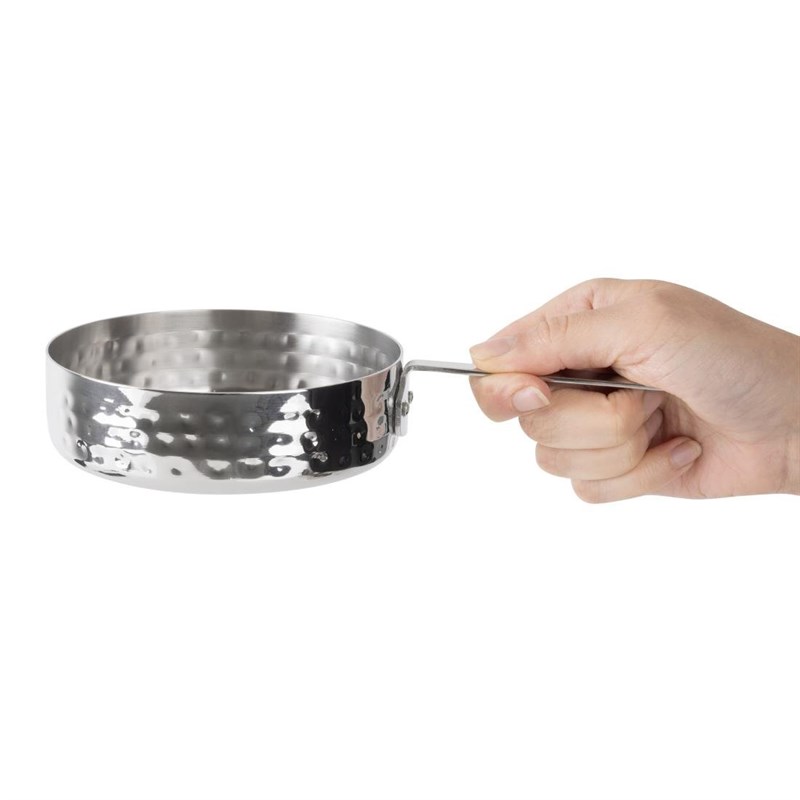 Servez de manière créative des portions individuelles et des sauces avec cette mini casserole en acier inoxydable Olympia. D'un diamètre de 125 mm, la casserole est parfaitement proportionnée pour mettre en valeur la présentation de vos créations culinaires. Grâce à sa finition martelée et à sa construction en acier inoxydable durable, elle conserve bien la chaleur pour garder le contenu au chaud plus longtemps. Une longue poignée rend le transport et le service plus sûrs et plus pratiques. Après le service, la casserole peut être mise directement au lave-vaisselle pour un nettoyage rapide et facile.