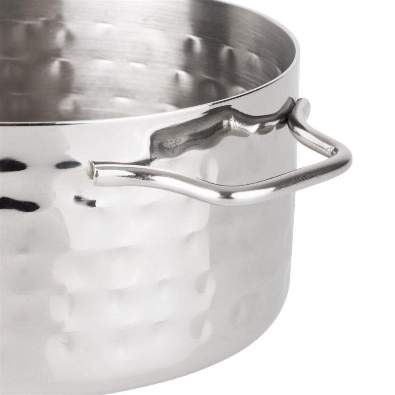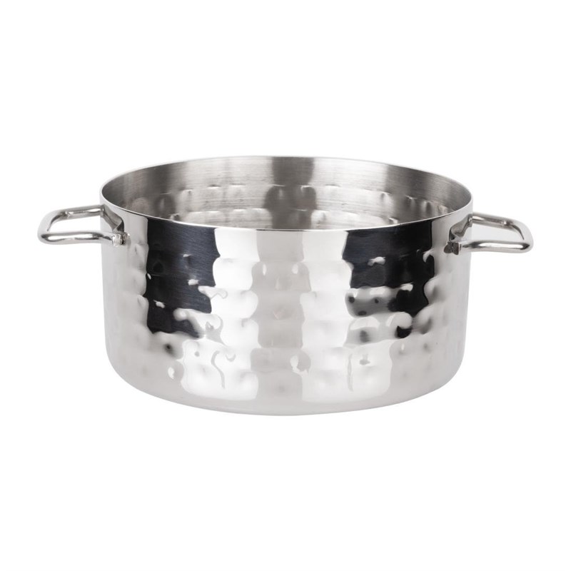 Apportez une touche d'élégance à la présentation de vos plats avec cette mini cocotte en acier inoxydable Olympia. D'un diamètre de 100 mm et d'une capacité de 460 ml, elle est parfaite pour cuisiner et servir des portions individuelles ou des accompagnements. Grâce à sa finition martelée et à sa construction robuste en acier inoxydable, la cocotte conserve bien la chaleur pour garder les aliments au chaud plus longtemps. Deux anses latérales facilitent le transport et le service en toute sécurité. Une fois le service terminé, cette mini cocotte Olympia peut être placée directement au lave-vaisselle pour un nettoyage rapide et facile.