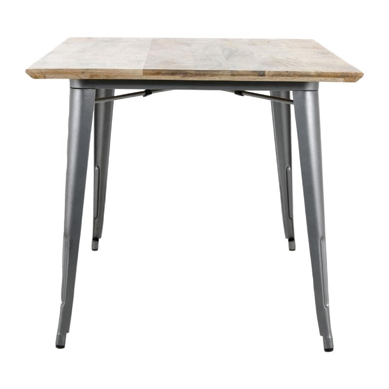 Table à manger avec plateau en bois de manguier lisse et piètement gris acier Bolero Bistro 1450 mm