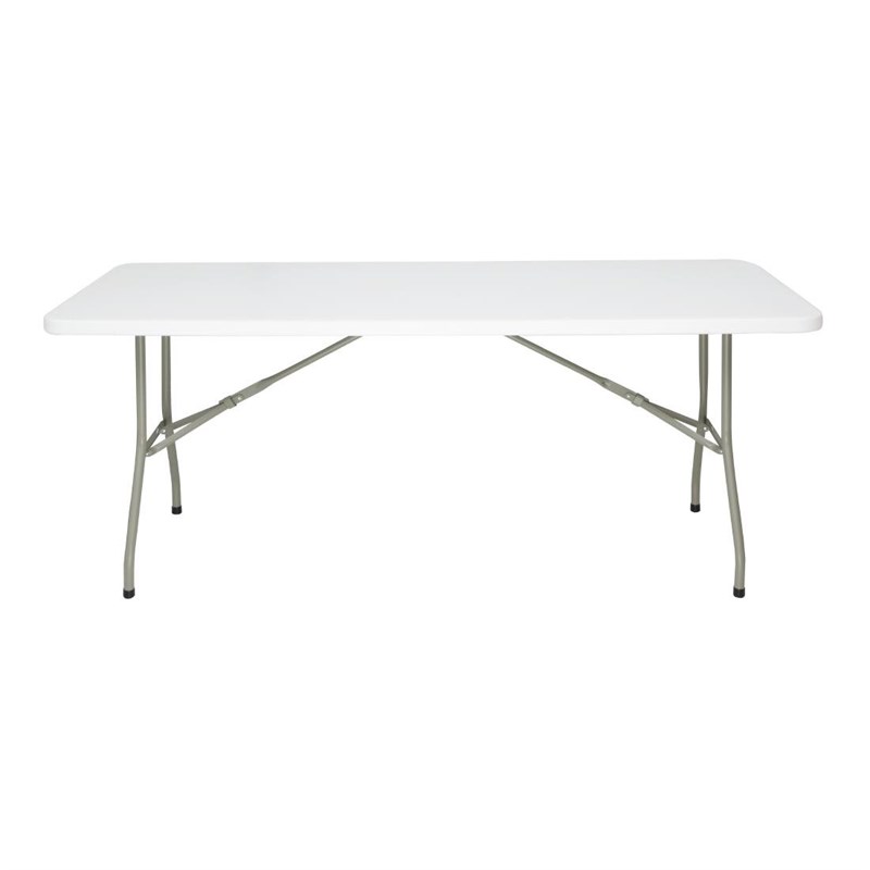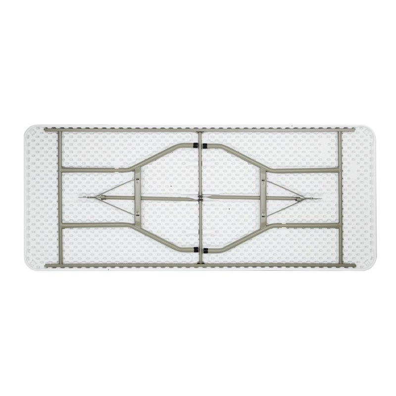 Les tubes en acier sont recouverts d'un revêtement poudré pour résister aux chocs et à la rouille, tandis que le plateau blanc est fabriqué en polyéthylène haute densité pour une excellente résistance aux rayures et une durabilité optimale. La surface facile à nettoyer garantit un entretien minimal et, à la fin du service, les pieds se replient à plat pour gagner de la place lors du rangement. Cette table pliante Bolero est parfaite pour les buffets, les fêtes, les festivals et la restauration lors d'événements en plein air.